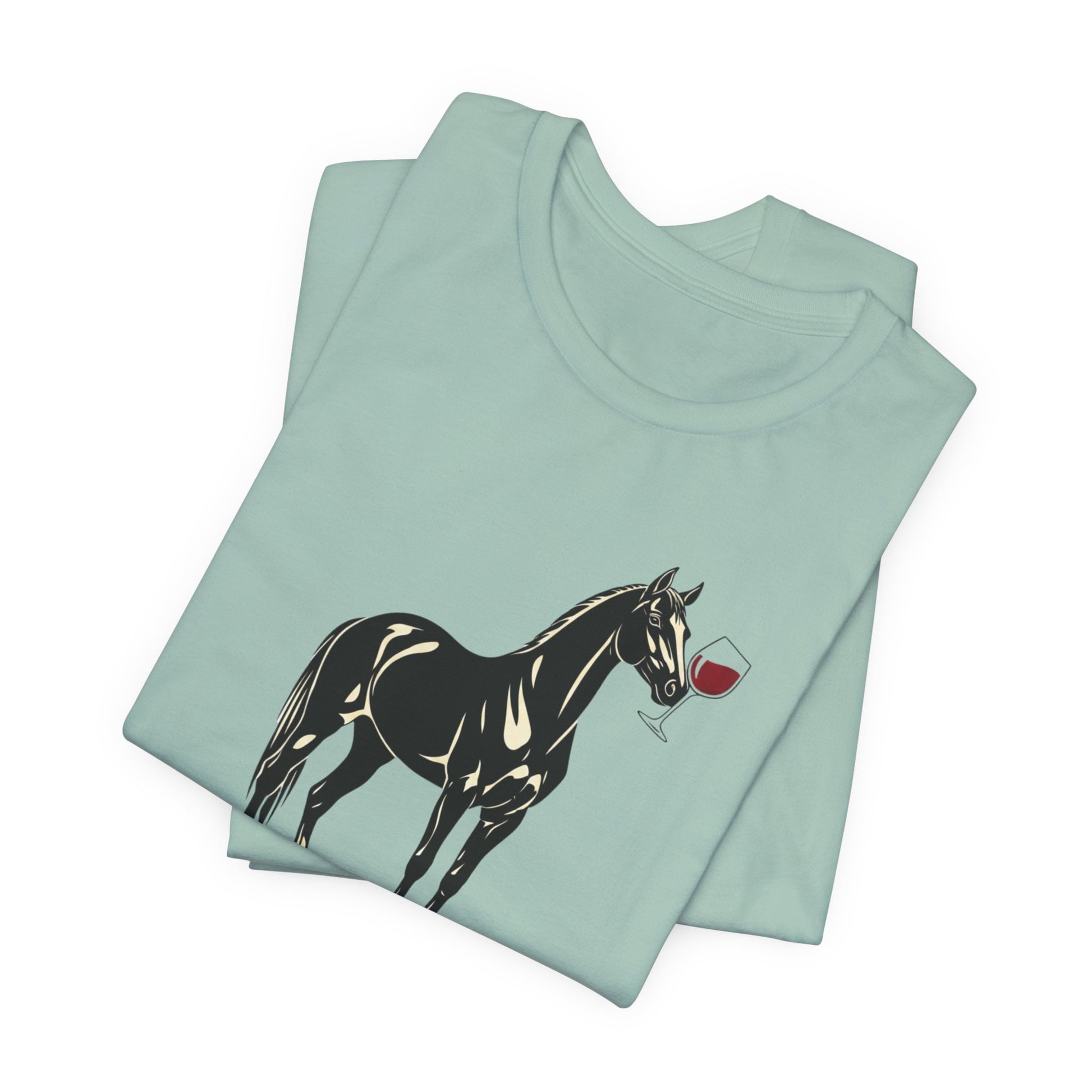 This soft, lightweight tee brings a quiet wink to barn life. A glossy black horse holding a tiny rose stands centered on a muted rose-terracotta shirt, with the understated line “Barn Stress, Bottle Therapy.” Wear it on muddy mornings or slow evenings in the tack room — it settles you into the kind of calm that follows a long grooming session and a good laugh with stable friends. The retail cut and crew neckline sit neatly under a vest or jacket. Breathable Airlume combed cotton keeps you cool during chores and cozy during porch coffee. It feels lived-in from the first wear and ages into a favorite you reach for after a day of lessons or weekend trails.