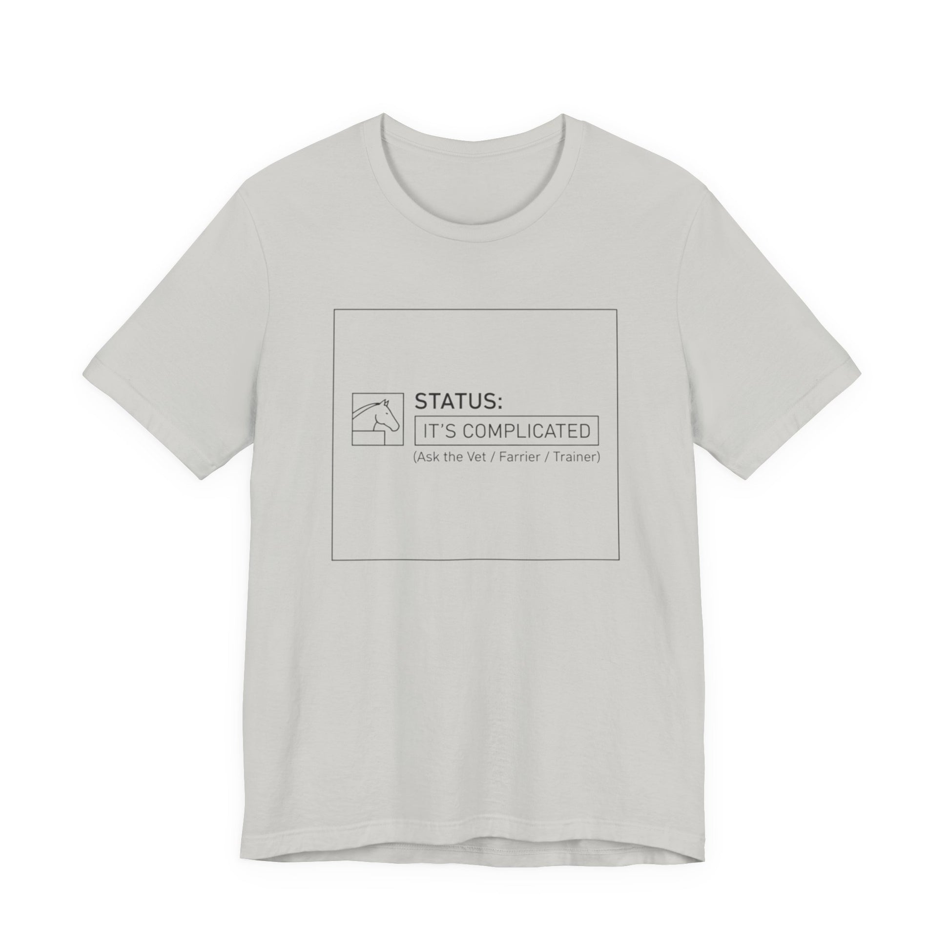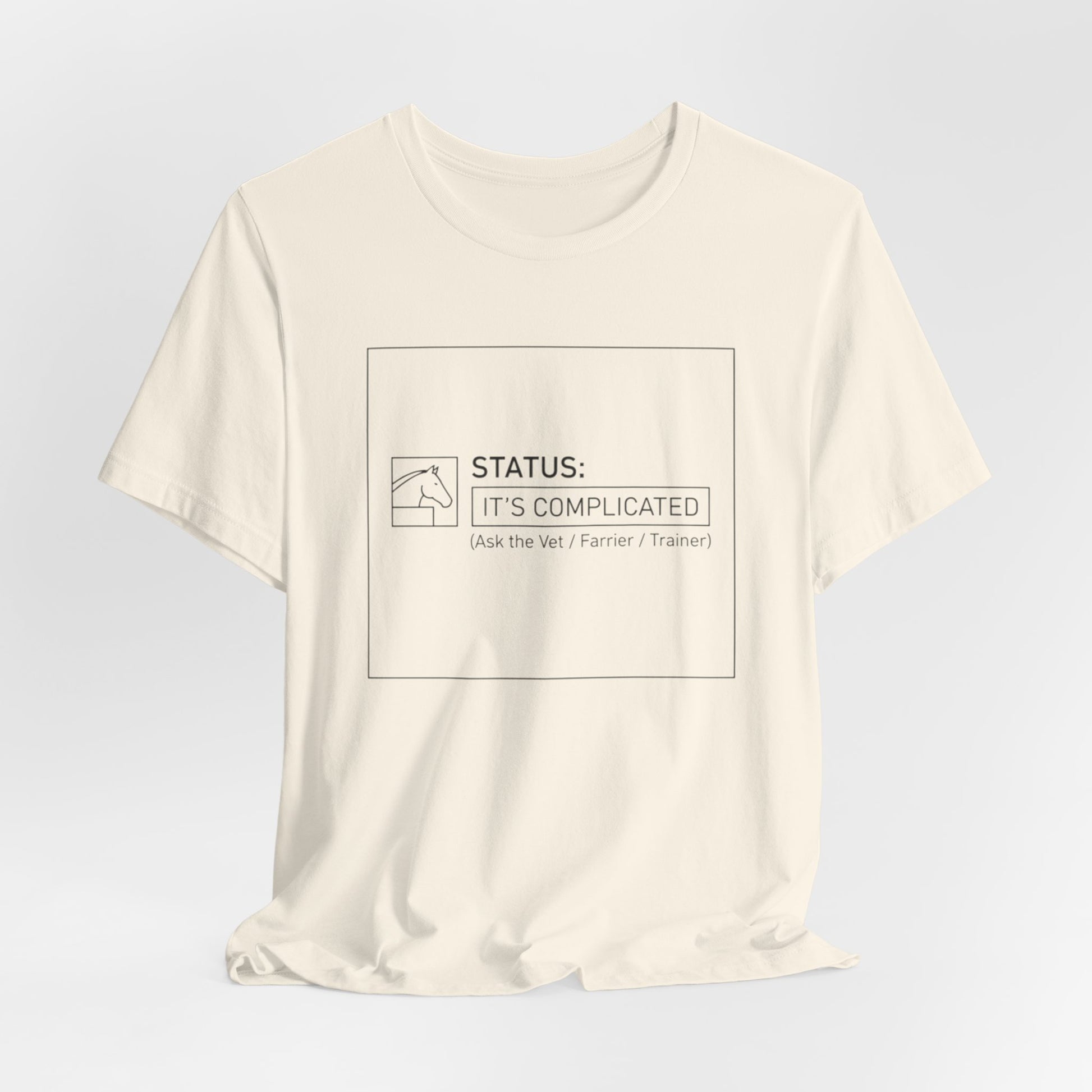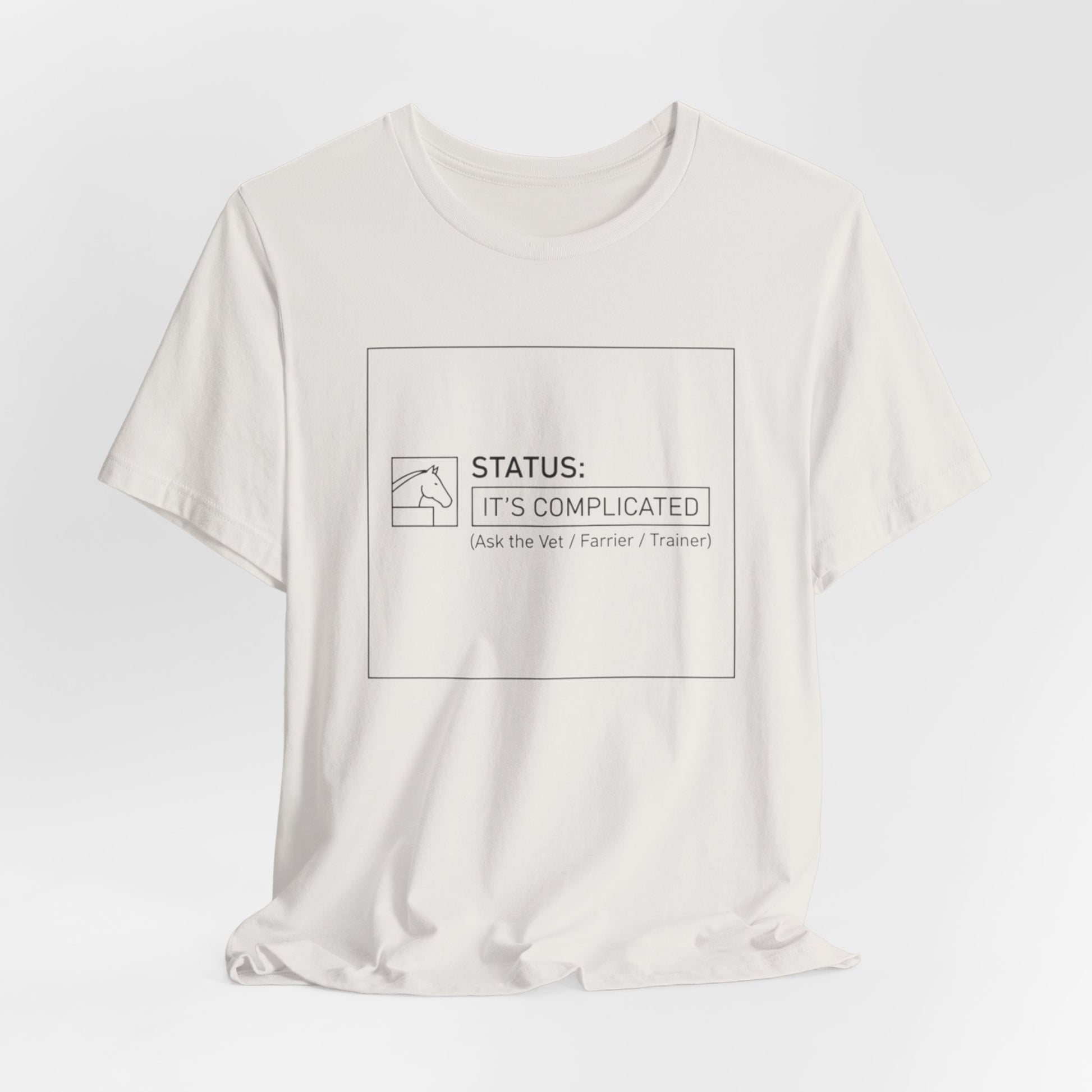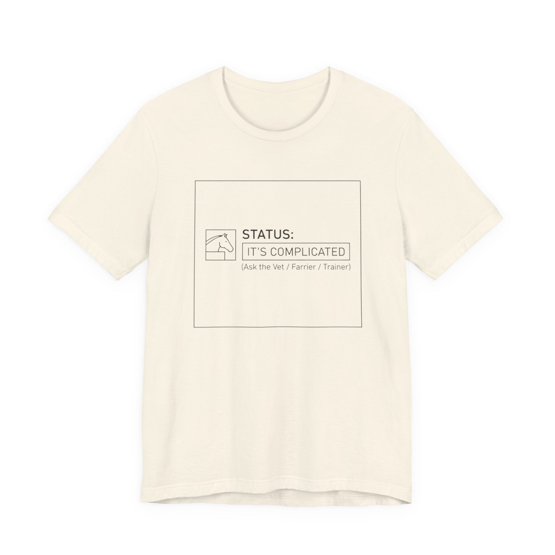 Lightweight and quietly expressive, this jersey tee wears its humor in a minimalist, hand-drawn way. The soft Airlume combed ring-spun cotton feels gentle against the skin and breathes easily during long days or low-key hangs. A subtle boxed design on the chest reads “STATUS: IT’S COMPLICATED” in a restrained line-art style — small, witty, and a little private. The crew neckline and retail fit keep the silhouette clean so you can layer a jacket, throw on a necklace, or let it stand alone as your everyday shrug-off. Ethically made and finished with a tear-away label, it’s designed to be comfortable, long-lasting, and quietly sly in its message.